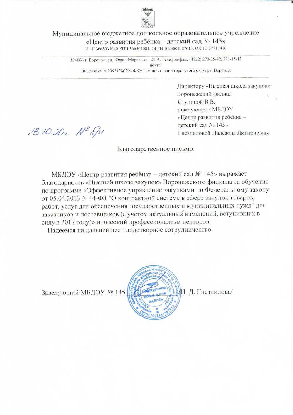 Благодарственные письма
